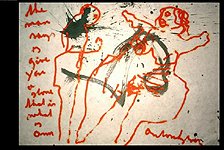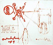 Ton creates in moments that life for him has become totally useless. Shere miserably he goes to his workshop and creates something; there he envisions something in a flash that enables him to continue. But not long. Sometimes only a day, or a few hours, but never longer than two days. Slowly he will return into depression of becomes childish and depressed. In between there is no way to exist for him. He himself does not believe in his work as an artist and says that he looks straight through it. For him believing is in that one little moment of creation. There, he envisions something. But when that is passed, no faith remains as something to hold on to. He must continiously create from total nothingness, and bé in total nothingness to resume creation”.
